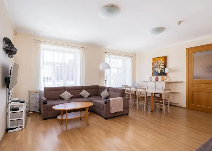 Apartmán Large 3Br Apartment With Balcony 5 Min To Old Town By Tram nabízí rychlý přístup k Spikeru Koncertzale a obsahuje výhledy na město. Cosmos Ilūziju Muzejs je umístěno 1 km daleko, zatímco Night Market je 600 metrů daleko.